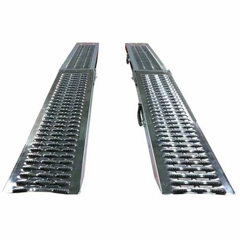 Die Rampen kö nnen zusammengeklappt und somit platzsparend verstaut werden. Durch die Griffe ist die FUXTEC Auffahrrampe ebenfalls tragbar! Durch die gefrä sten Lö cher bietet die Rampe einen sehr guten Grip und einen sicheren Halt!