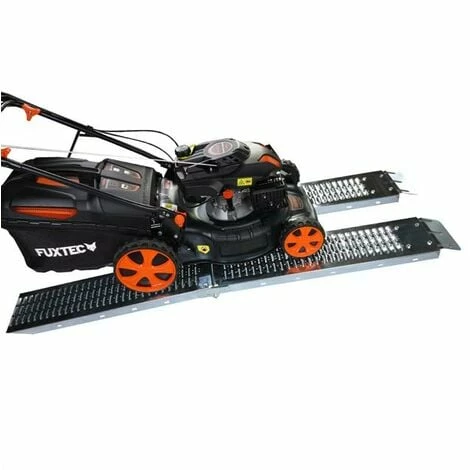 Die FUXTEC Auffahrrampe fü r ein sicheres Ver/ und Beladen von schweren Maschinen, wie beispielsweise Rasenmä her/kleine Traktoren,Baumaschinen, Quads/Motorrä der oder auch Rollstü hle und Schubkarren.Sie werden hiermit eine deutlich komfortablere Verladesituation antreffen!
