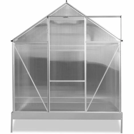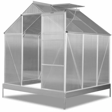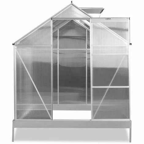 Der Rahmen besteht aus rostfreiem und robusten Aluminium, die Seitenwä nde aus 4mm starken, UV-bestä ndigen PVC-Hohlkammerplatten. Zur Belü ftung des Innenraums befindet sich im Satteldach ein aufstellbares Dachfenster. Sie gelangen in Ihr Gewä chshaus ü ber eine einfache kugelgelagerte Schiebetü r.